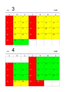 黄・緑→授業日